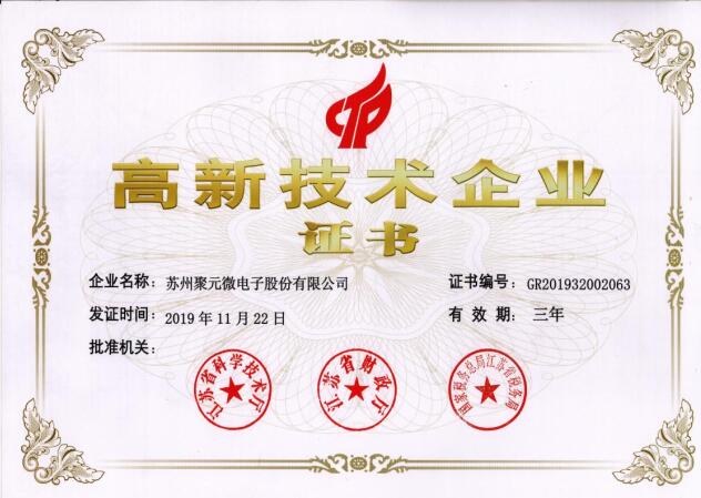 Recently, our company successfully passed the review and assessment of the national science and technology department and the financial department, and was awarded the national high-tech enterprise. The adoption of high-tech enterprises marks the company's scientific and technological innovation ability to a new level, which will greatly promote the company's future production and operation, and affirm our achievements in the field of integrated circuit (Design)!